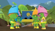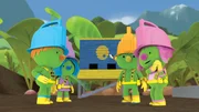 Mission: Tüftler-PavillonDie Tüftler überlegen, was sie in ihrem Tüftler-Pavillon vorführen möchten und lassen sich auf dem Spielplatz inspirieren.ÂBild: © KiKA/The Jim Henson Company/DHX Media