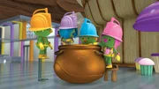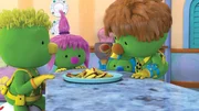 Mission: Gute MischungDie Doozer genieüen leckere Radieschen-Schnitzel. ÂBild: © KiKA