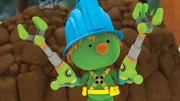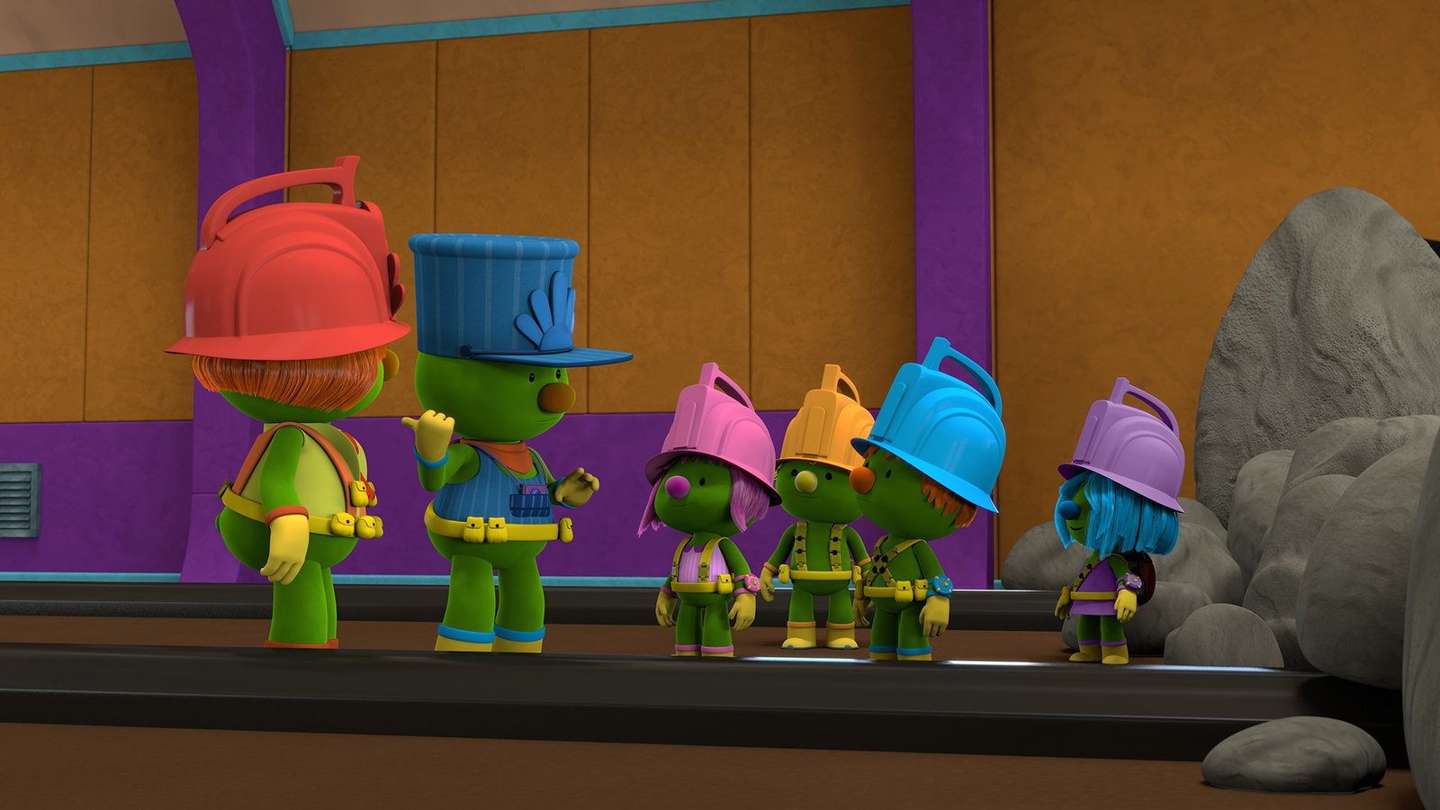 Mission: DoozerverwuserDoozer Dwight kann die Doozer-Tunnelbahn nicht am Geröll vorbeifahren und muss umkehren.Bild: © KiKA/The Jim Henson Company/DHX Media