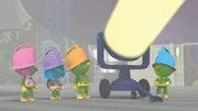 Mission: Geheimnisvolles KästchenMit einer versteckten Kamera finden die Doozer Detektive schnell heraus, wer die Pfannkuchenmaschine klaut.Bild: © KiKA/The Jim Henson Company/DHX Media