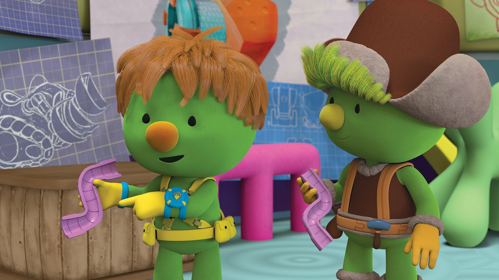 Mission: KlubhausWenn die Bauteile gerade und im rechten Winkel stehen und man einen Plan hat, kann der Bau des Klubhauses gelingen.Bild: © KiKA/2018 The Jim Henson Company