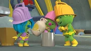 Mission: StaubfreiDie Doozers haben eine Idee, wie sie ihre Fahrzeuge sauber bekommen können. ÂBild: © KiKA