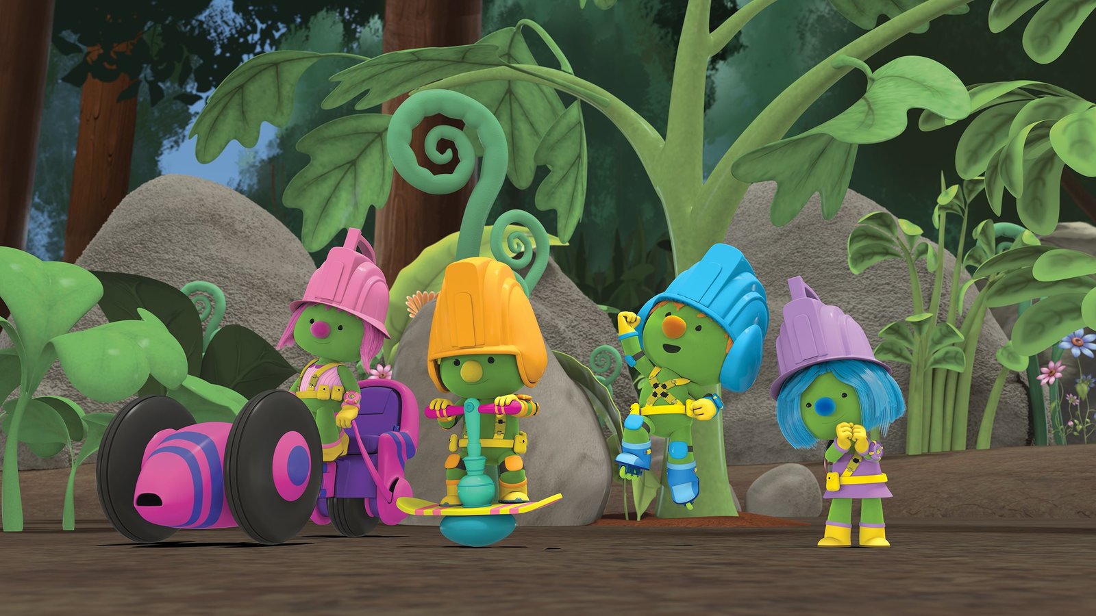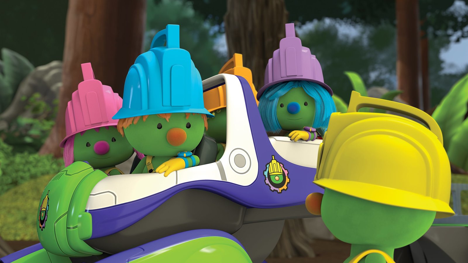 Mission: DoocathlonDas T??ftler-Team freut sich ??ber seine Doozer-angetriebenen Fahrzeuge. Aber was hat Daisy vor?Bild: © KiKA/2018 The Jim Henson Company