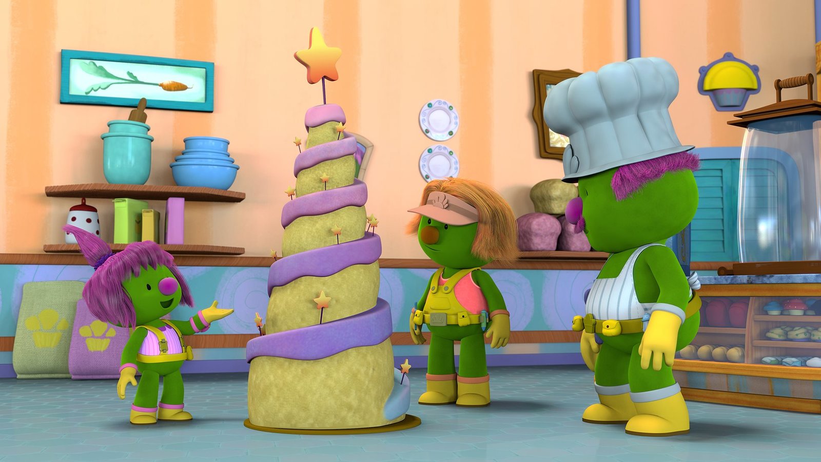 Mission: SchluckaufMolly und ihre Familie staunen ??ber die riesige Torte, die sie gebacken haben.Bild: © KiKA/The Jim Henson Company/DHX Media