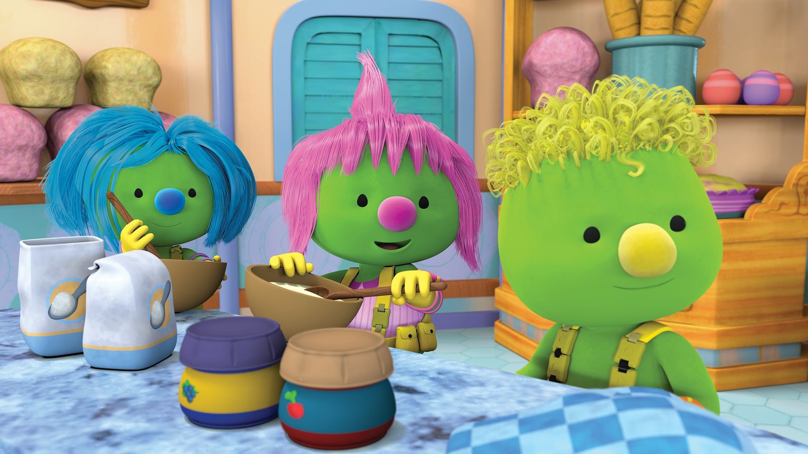 Mission: Dieb im Doozer-TalDaisy und Spike wollen mit den Teigrollern aus Bäcker Timber Bolts Bäckerei etwas ausprobieren.ÂBild: © KiKA