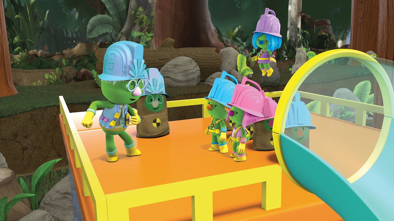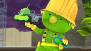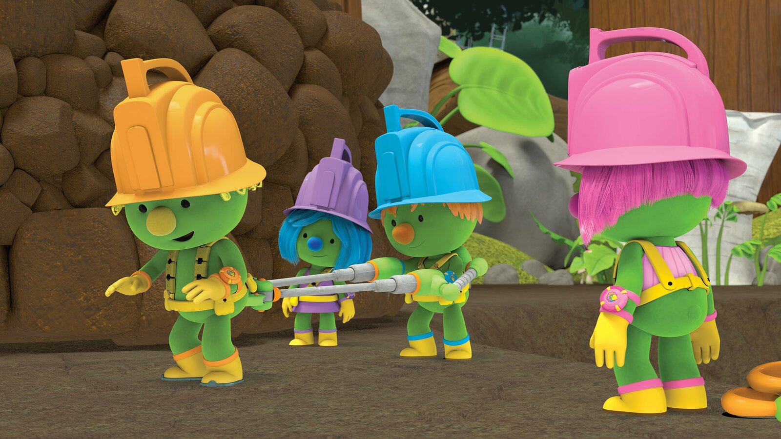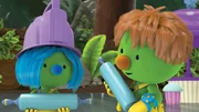 Mission: DoosquatchJetzt brauchen die Doozer eine neue Idee, um auch das Tüftler-Mobil aus dem Loch zu holen.Bild: © KiKA/2018 The Jim Henson Company