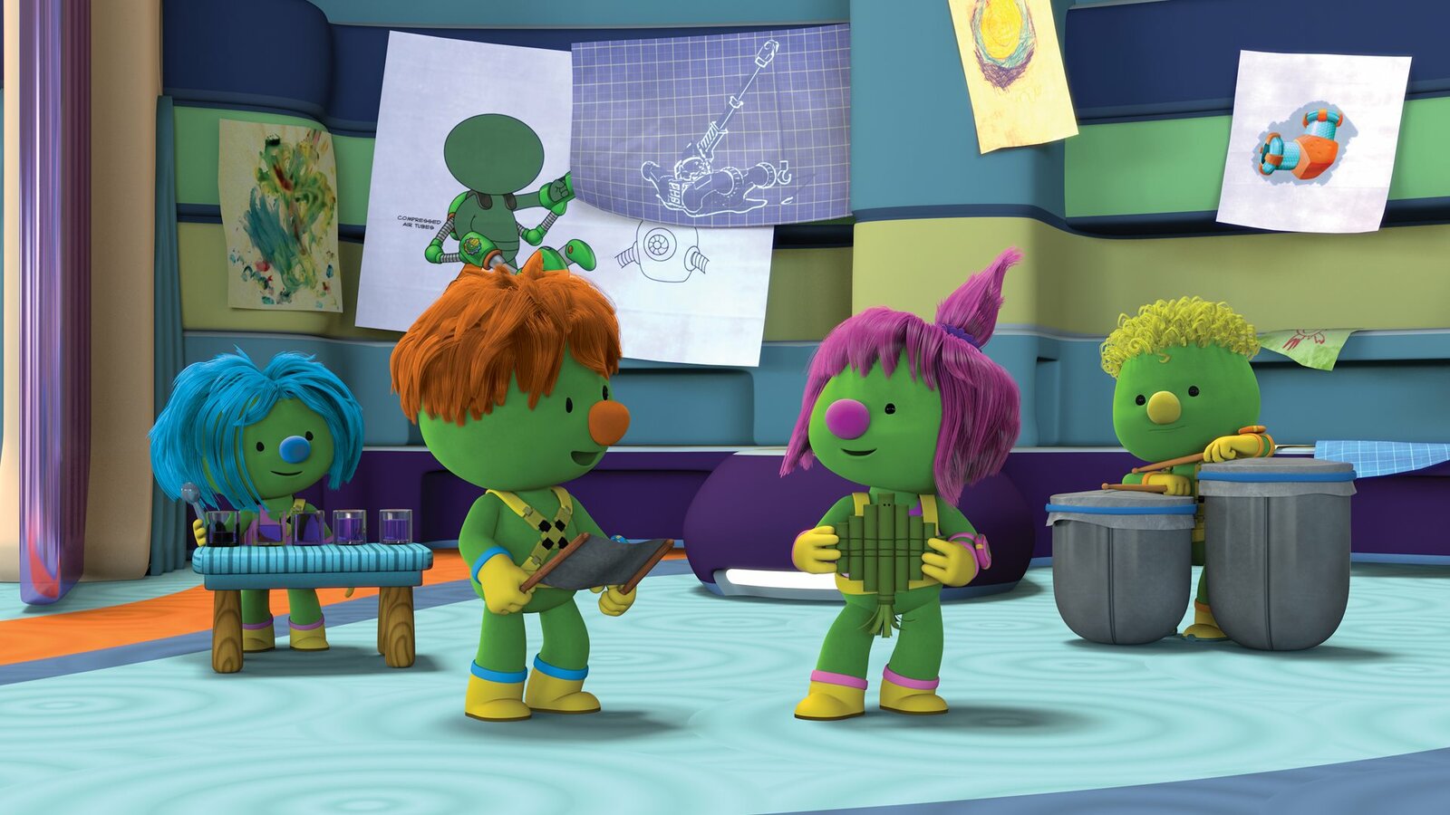 Mission: UmfunktionierenMolly und Spike haben ihre Instrumente mit zu Flex gebracht.Bild: © KiKA/The Jim Henson Company/DHX Media