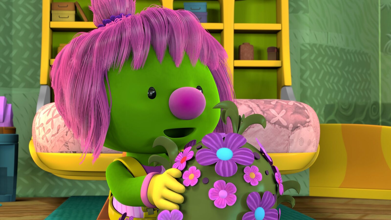 Mission: Kleine WunderMolly hat einen floralen Helm gebastelt.Bild: © KiKA/The Jim Henson Company/DHX Media