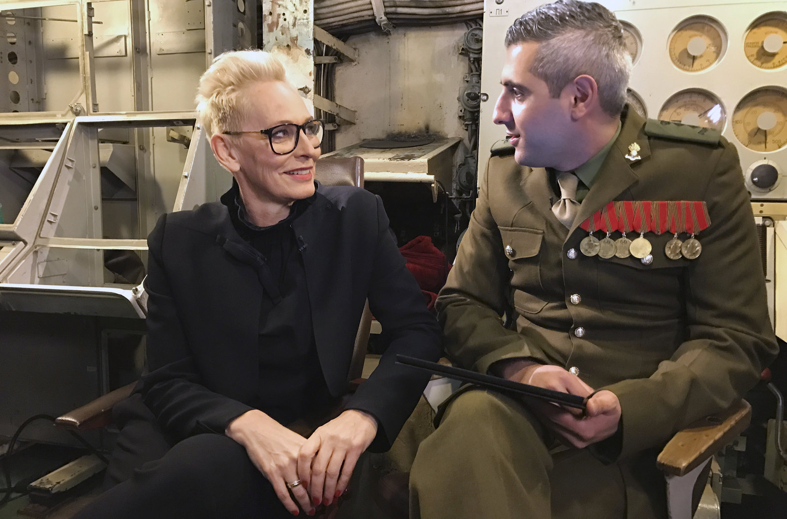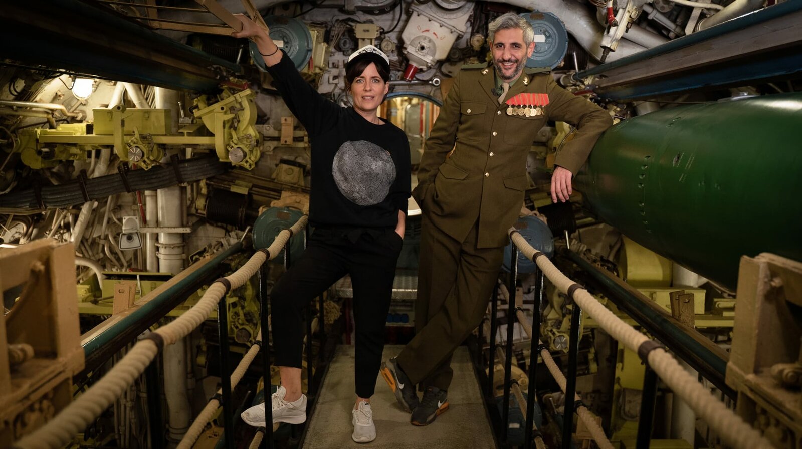 Bärbel SchäferBärbel Schäfer trifft auf Michel Abdollahi - in der Kommandozentrale des ausrangierten U-Boots.Bild: © NDR/Stefan Mühlenhoff