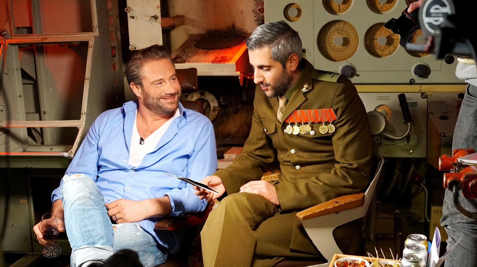 SashaTalk bei Tee, Rollmops und Leberwurstschnittchen: Michel Abdollahi empfängt den Sänger Sasha auf der Kommandobrücke eines alten U-Boots im Hamburger Hafen.Bild: © NDR/Stefan Muehlenhoff