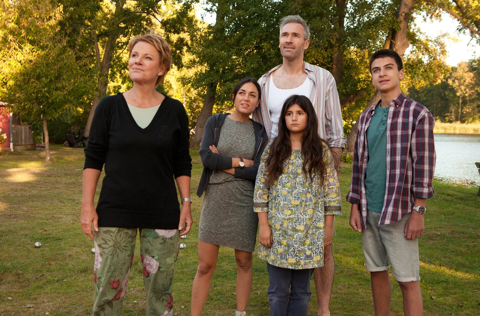 Das FindelkindPauls engste Freunde und Vertraute: die Pflegerin Hildegard (Mariele Millowitsch, li.) sowie das Tierarzt-Ehepaar Jule (Mona Pirzad) und Aaron (Ben Braun) mit seinen Kindern Greta (Lou Piedayesh) und Noah (Junus Petersen, re.).Bild: © ARD Degeto/Britta Krehl
