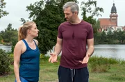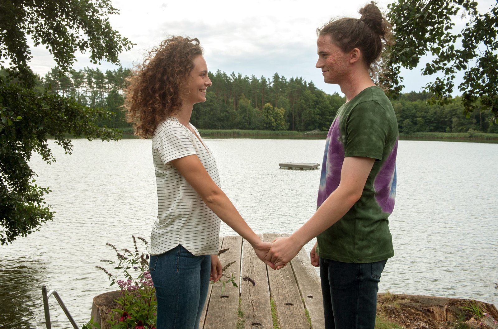 Zurück ins LebenChris (Tilmann Pörzgen) kann sich Helena (Muriel Wimmer) endlich ohne Maske zeigen.Bild: © ARD Degeto/Britta Krehl