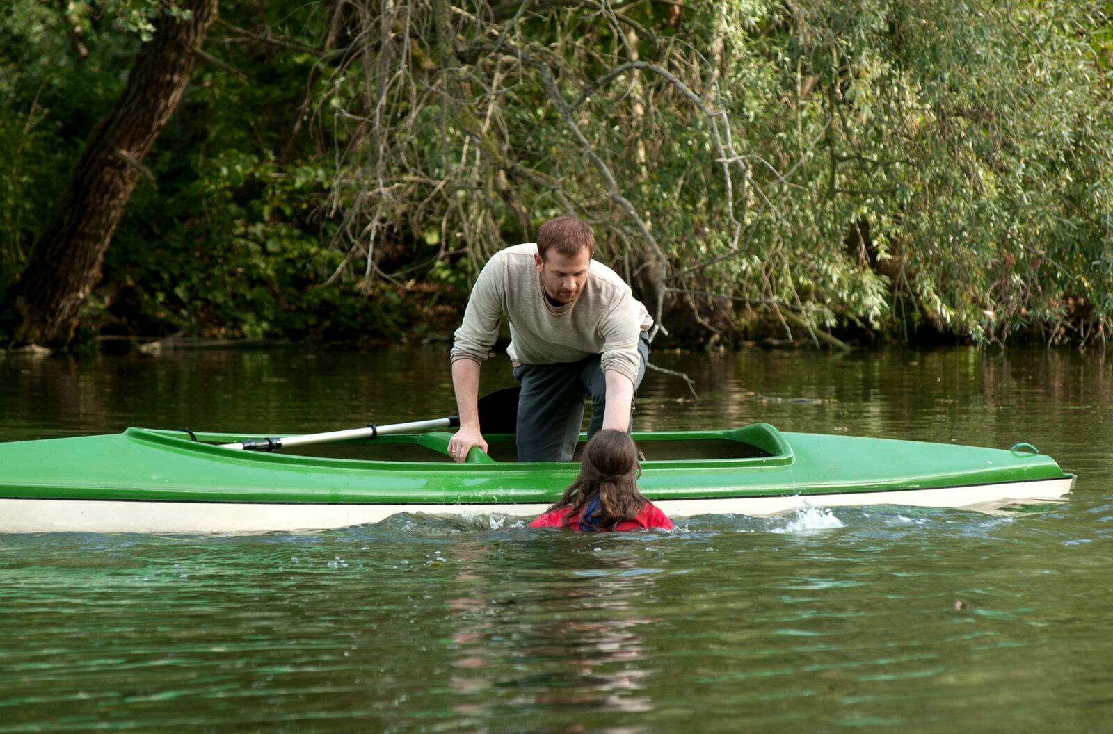 Das FindelkindPaul (Christoph Schechinger) fischt Natalie (Julia Hartmann) aus dem Wasser.Bild: © ARD Degeto/Britta Krehl