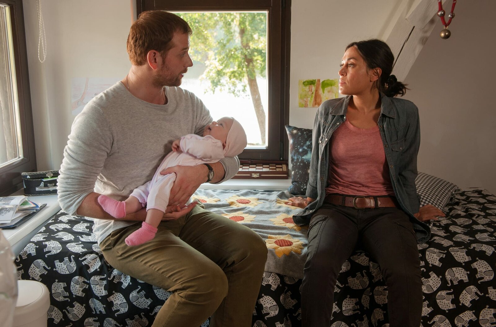 Das FindelkindPaul (Christoph Schechinger) und Jule (Mona Pirzad) mit dem Findelkind.Bild: © ARD Degeto/Britta Krehl
