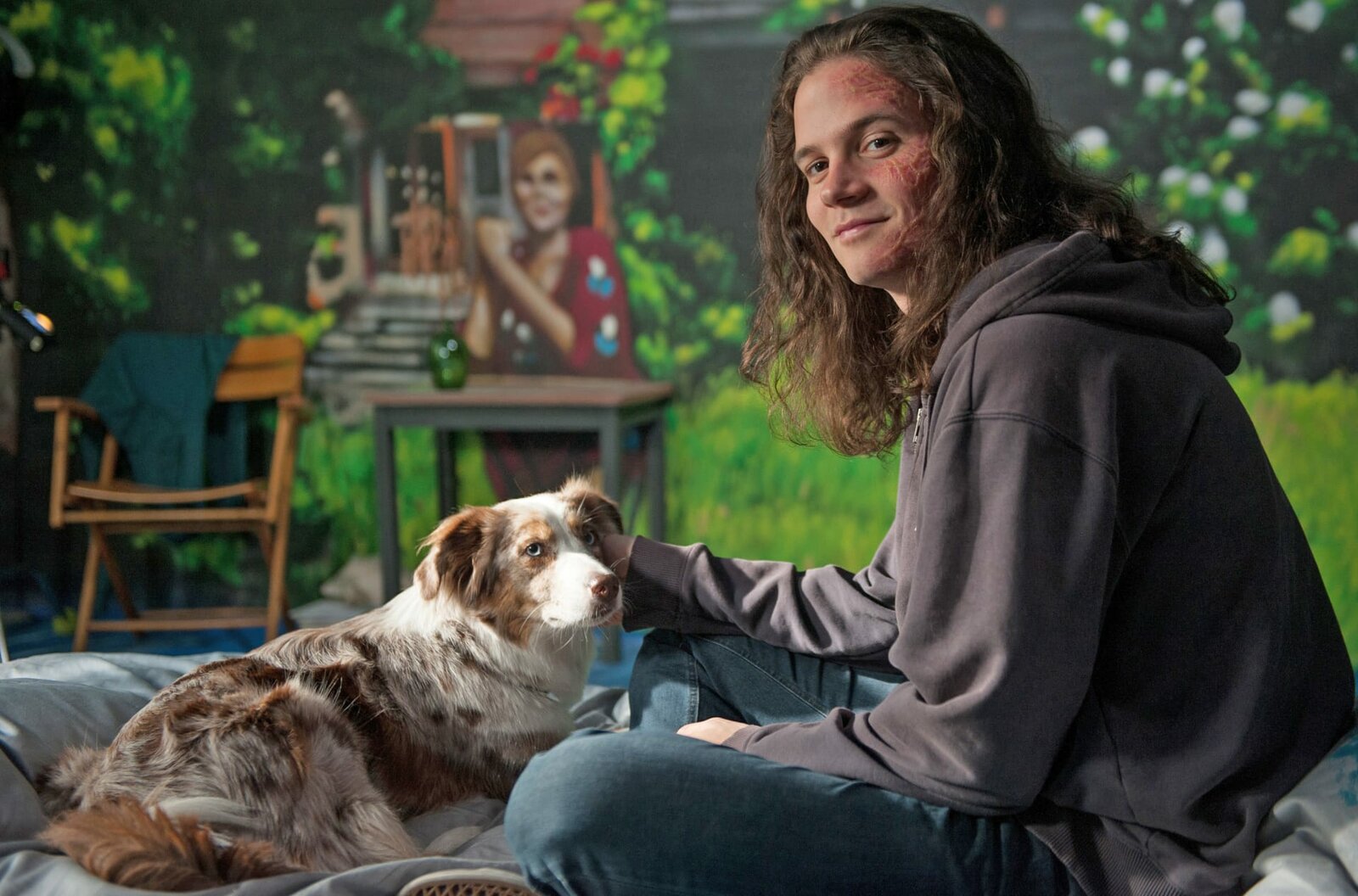 Zurück ins LebenChris (Tilmann Pörzgen) fühlt sich mit Therapiehündin Käthe sehr wohl.Bild: © ARD Degeto/Britta Krehl