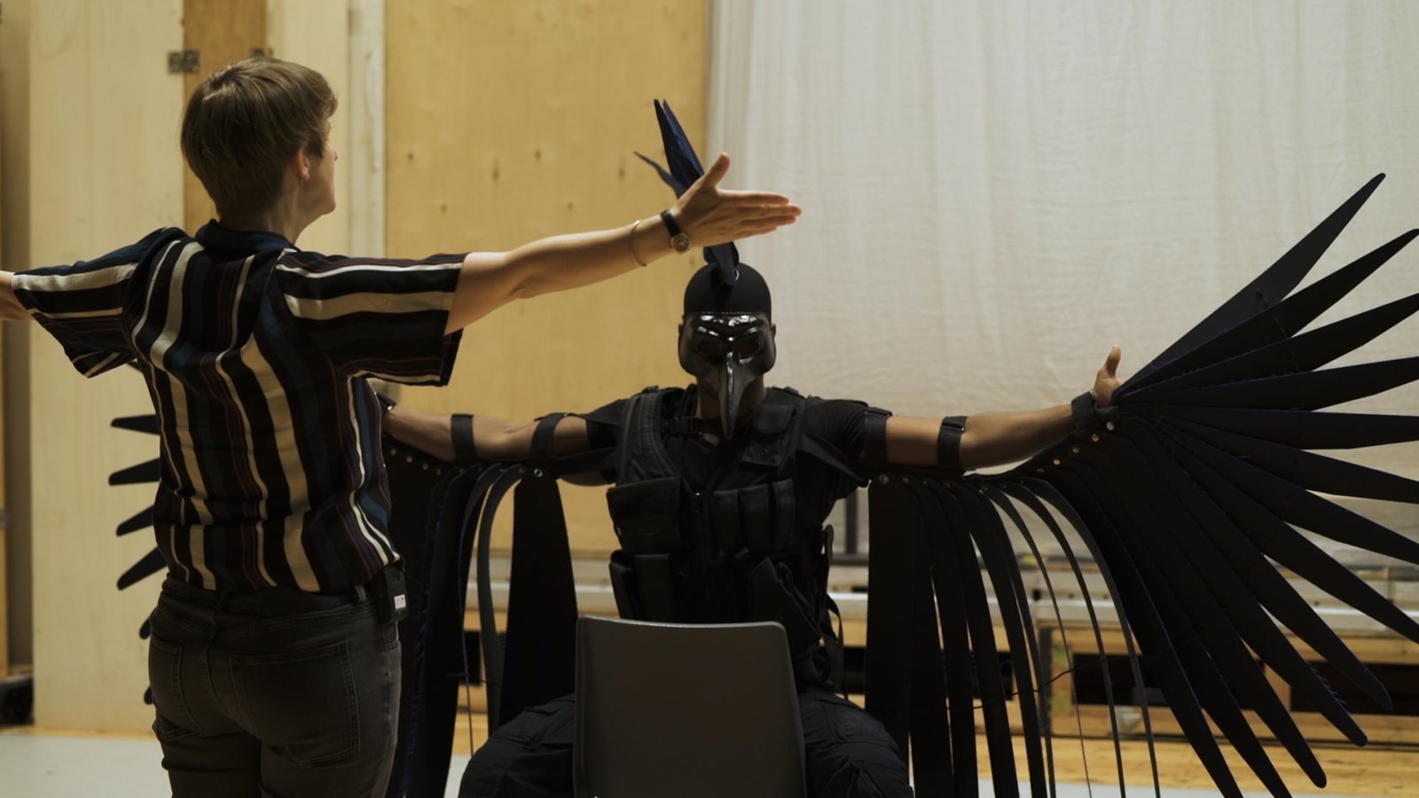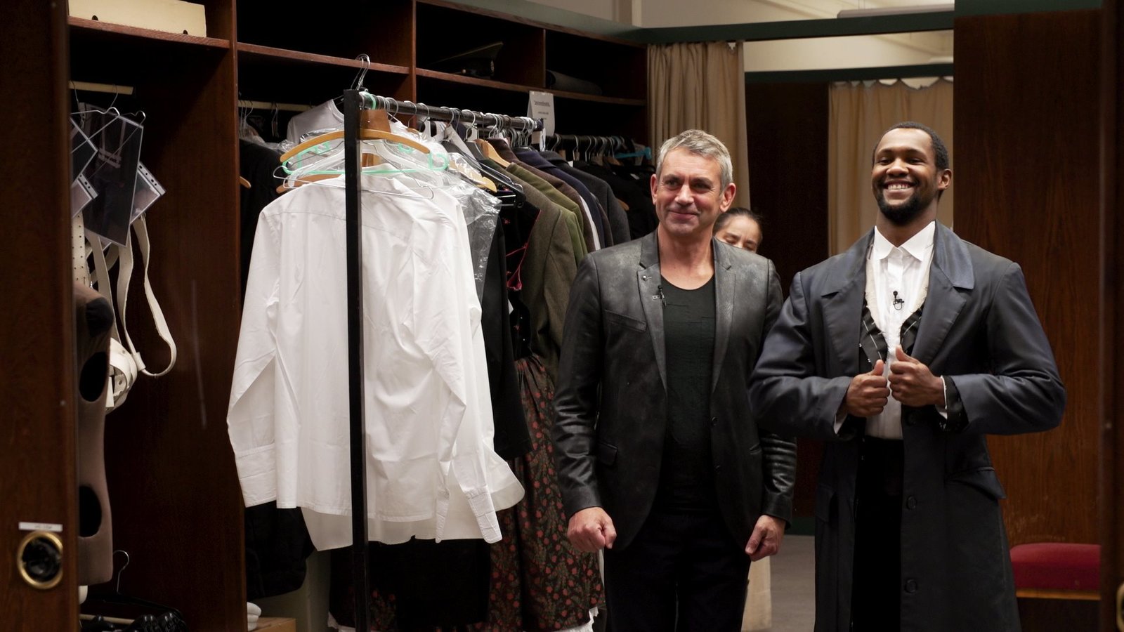SemperoperKaminer begleitet den jungen Tenor Khanyiso Gwenxane zur Kostümprobe.Bild: © ZDF und Johann Schmejkal.