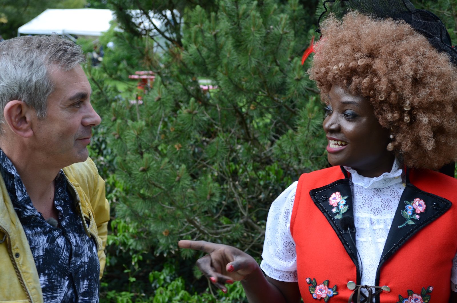 SchweizWladimir Kaminer lässt sich von Yvonne Brändle-Amolo das Jodeln erklären.Bild: © ZDF und SRF.
