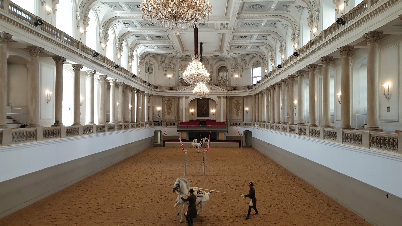 Spanische HofreitschuleMorgenarbeit im Reitsaal der Spanischen Hofreitschule in der Wiener Hofburg.Bild: © ZDF und Nadja Kölling.