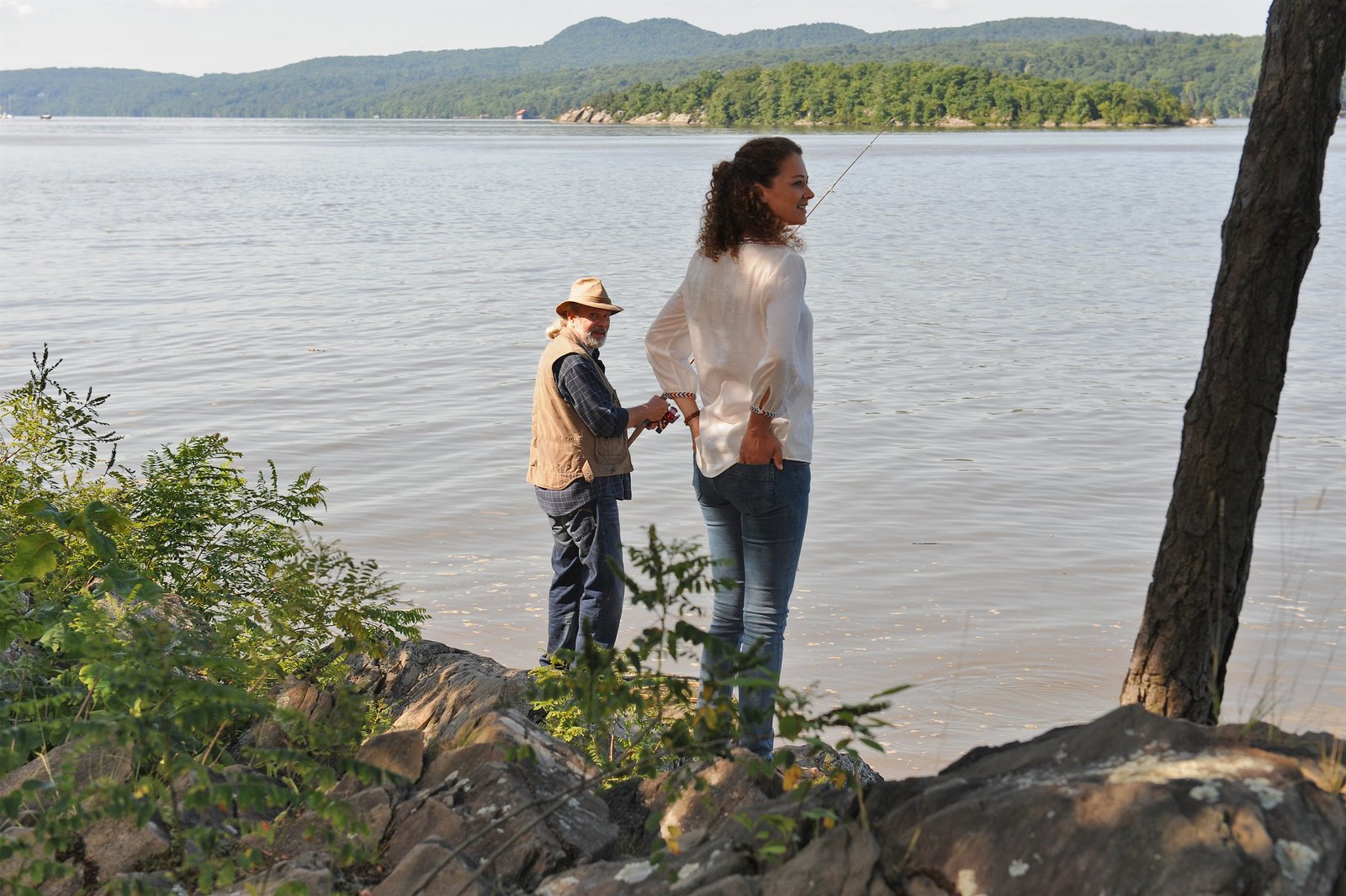 VergissmeinnichtMatthew Bradford (Patrick Rapold) und Dr. Natalie Wayne (Henriette Richter-Röhl) nehmen spontan an einem Kanurennen des Dorfes teil und kommen sich näher. in Verbindung mit der Sendung bei Nennung ZDF/Simon VoglerBild: © ZDF/Simon Vogler