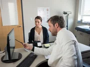 Ziemlich beste FreundinnenFrank (Nicholas Reinke) erklärt Paula (Henriette Richter-Röhl), dass sie sich einer OP unterziehen muss.Bild: © ZDF und Rick Friedman