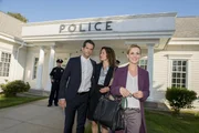 Die Frau an seiner SeiteAuf Drängen der PR-Frau Robin (re: Anja Nejarri) holt Julie (Mi: Regula Grauwiller) ihren Mann Eric (li: Martin Rapold) nach seiner Nacht auf der Polizeistation ab. in Verbindung mit der Sendung bei Nennung ZDF/Rick FriedmanBild: © ZDF/Rick Friedman