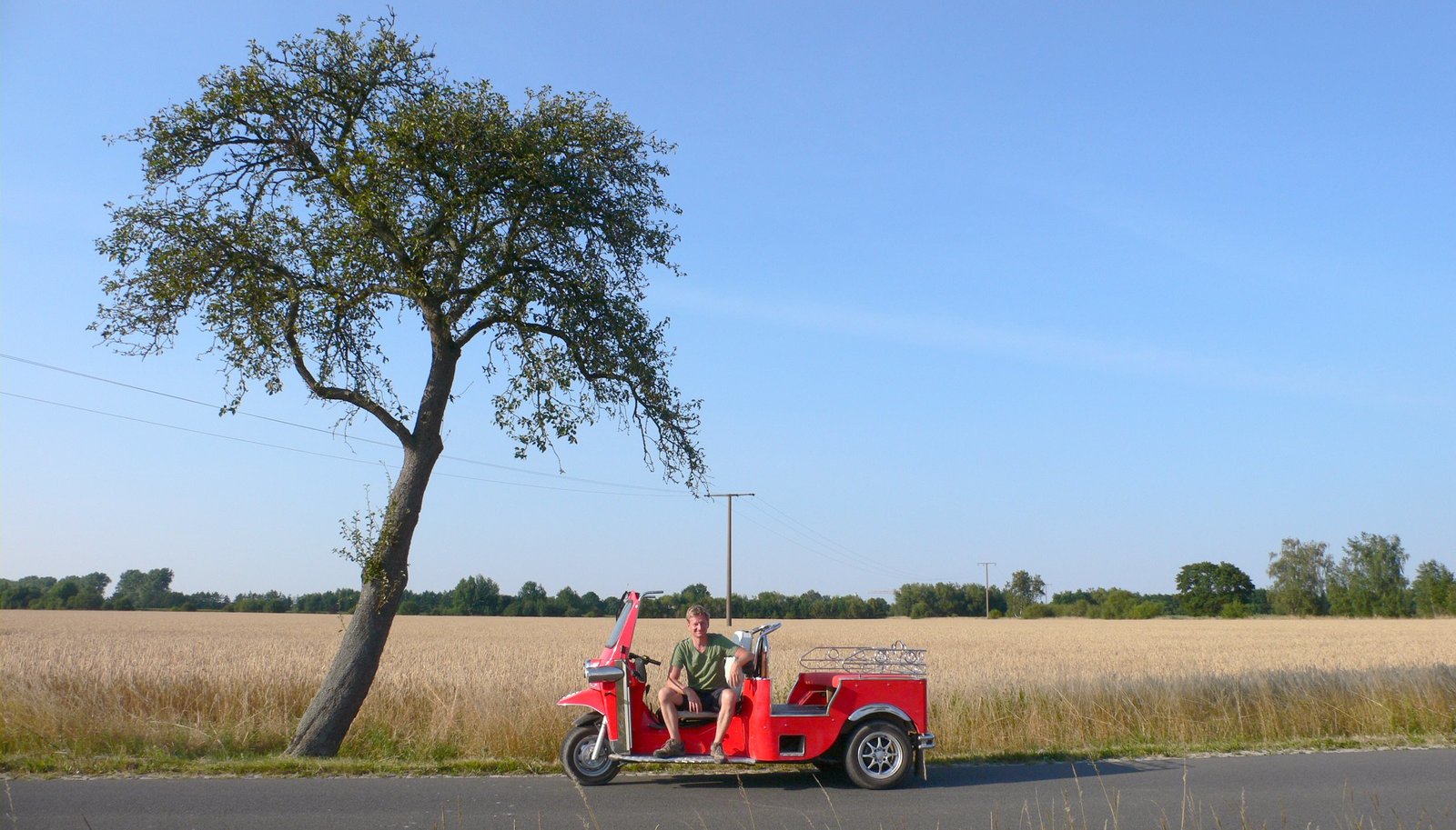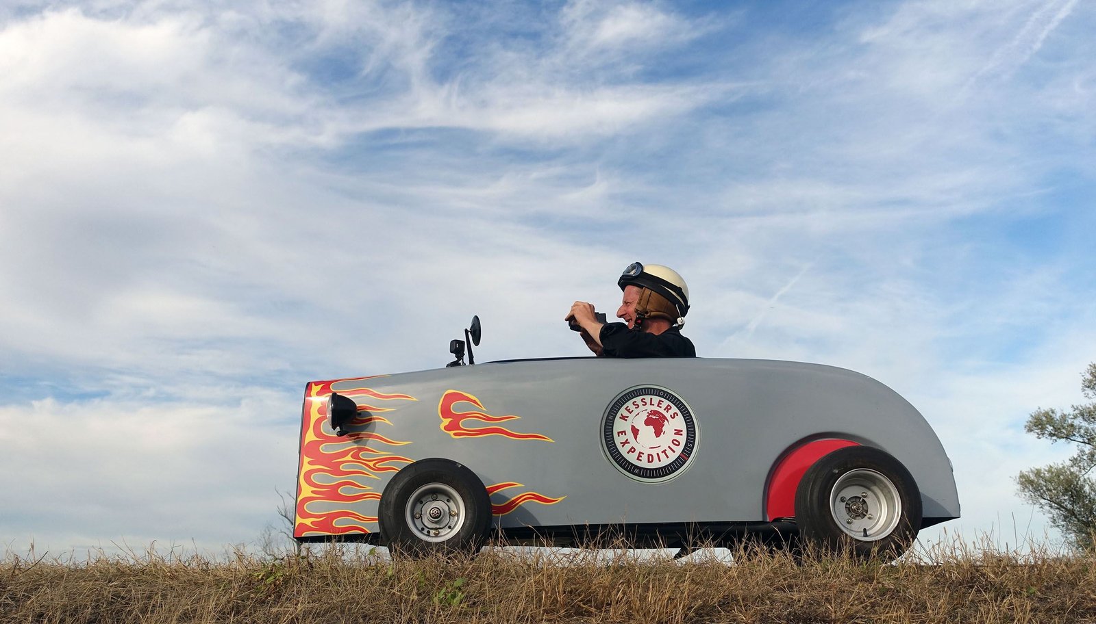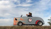 Mit der Seifenkiste an der Oder (1)Michael Kessler geht gerne mal an Grenzen – und das ist bei seiner nächsten "Expedition" für den rbb wörtlich zu nehmen: Seit 26. September 2016 ist Kessler mit einer winzigen Seifenkiste an der Oder unterwegs. Er startet auf einem der schönsten Radwege Deutschlands, im kleinen Örtchen Neißemünde, wo die Oder erstmals Deutschland erreicht. Dann folgt er dem Grenzfluss Richtung Norden bis zur Ostsee. - Kessler fährt eine winzige Seifenkiste, die zwar motorisiert ist, aber nicht nur in Sachen Bequemlichkeit eine Herausforderung wird.Bild: © rbb/Roland Albrecht