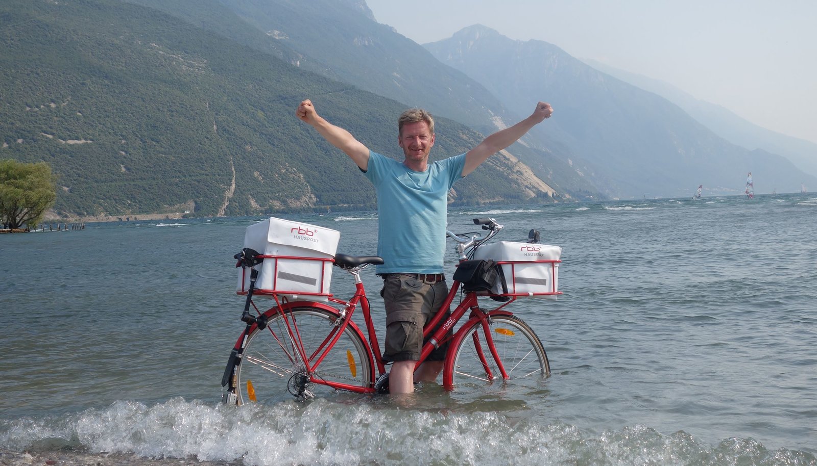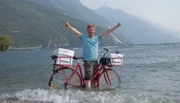 Mit dem Postrad über die Alpen (2)Michael Kessler hat sein Ziel, den Gardasee, erreicht.Bild: © rbb/Roland Albrecht