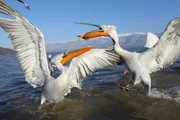 Die ÜberlebenskünstlerDer Kehlsack der Krauskopfpelikane fasst bis zu 14 Liter Wasser und dient als Kescher beim Fischfang. Während der Paarungszeit färbt sich der Hautsack in ein leuchtendes Orange.Bild: © ZDF und Andreas Kieling.