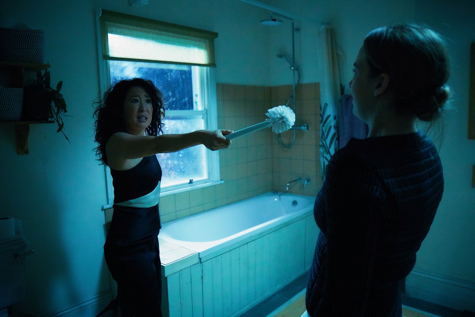 Ich habe eine Vorliebe für BadezimmerKilling Eve Staffel 1 Folge 5 In der Hand der Killerin: Jodie Comer als Villanelle, Sandra Oh als Eve Polastri Copyright: SRF/BBCBild: © SRF/BBC