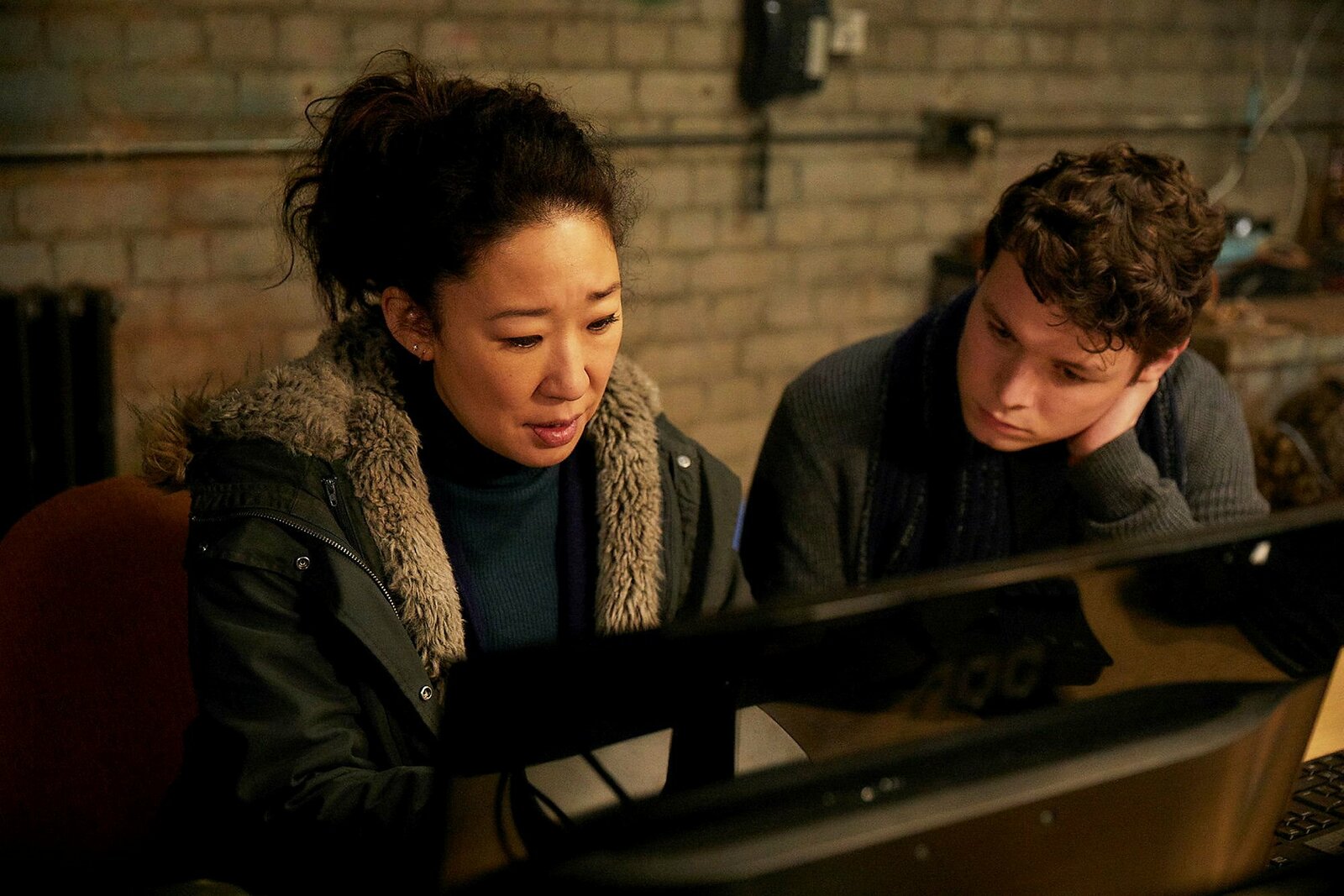 Ich will nicht frei seinKilling Eve Staffel 1 Folge 7 Finden Antworten mithilfe des Computers: Sandra Oh als Eve Polastri, Sean Delaney als Kenny Stowton Copyright: SRF/BBCBild: © SRF/BBC