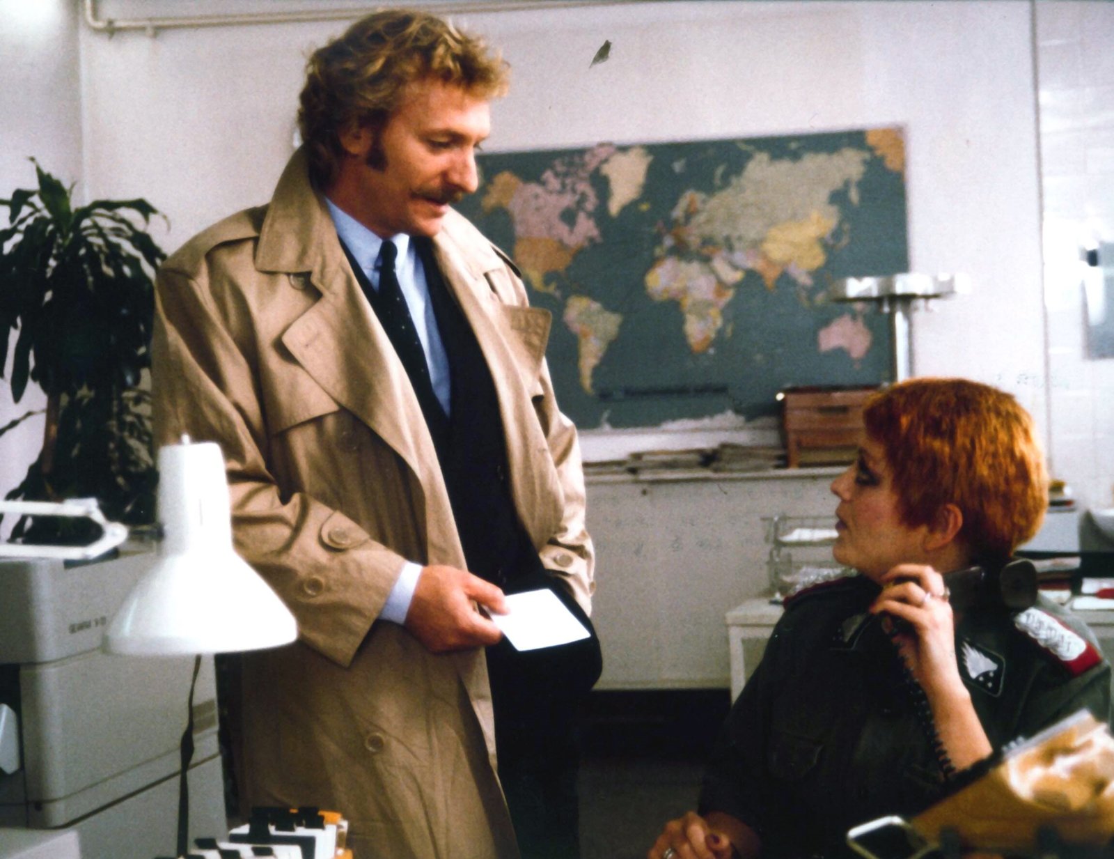 Adieu ClaireBaby Schimmerlos (Franz Xaver Kroetz) und seine Sekretärin Edda (Billi Zoeckler) denken über die morgige Schlagzeile nach.Bild: © WDR/WDR