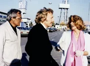 Adieu ClaireIn der Boutique von Butzi Krüll (Charles Regnier, rechts) hat man wieder einen tollen Trend ausgebrütet, den "marines look". Auch Mona (Senta Berger), die Freundin von Baby Schimmerlos, dem Klatschreporter der "Münchner Allgemeinen Tageszeitung" (MATZ), ist von dieser Modeidee begeistert. Links: Udo Kier als Boutique-Verkäufer.Bild: © WDR/WDR