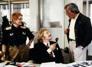 Wer reinkommt, ist drinDrei, die ganz groß rauskommen wollen: Prominenten-Zahnarzt Dr. Friedmann (Martin Wittbusch, l.) Lisa (Corinna Drews) und Generaldirektor Haffenloher (Mario Adorf, r.).Bild: © WDR