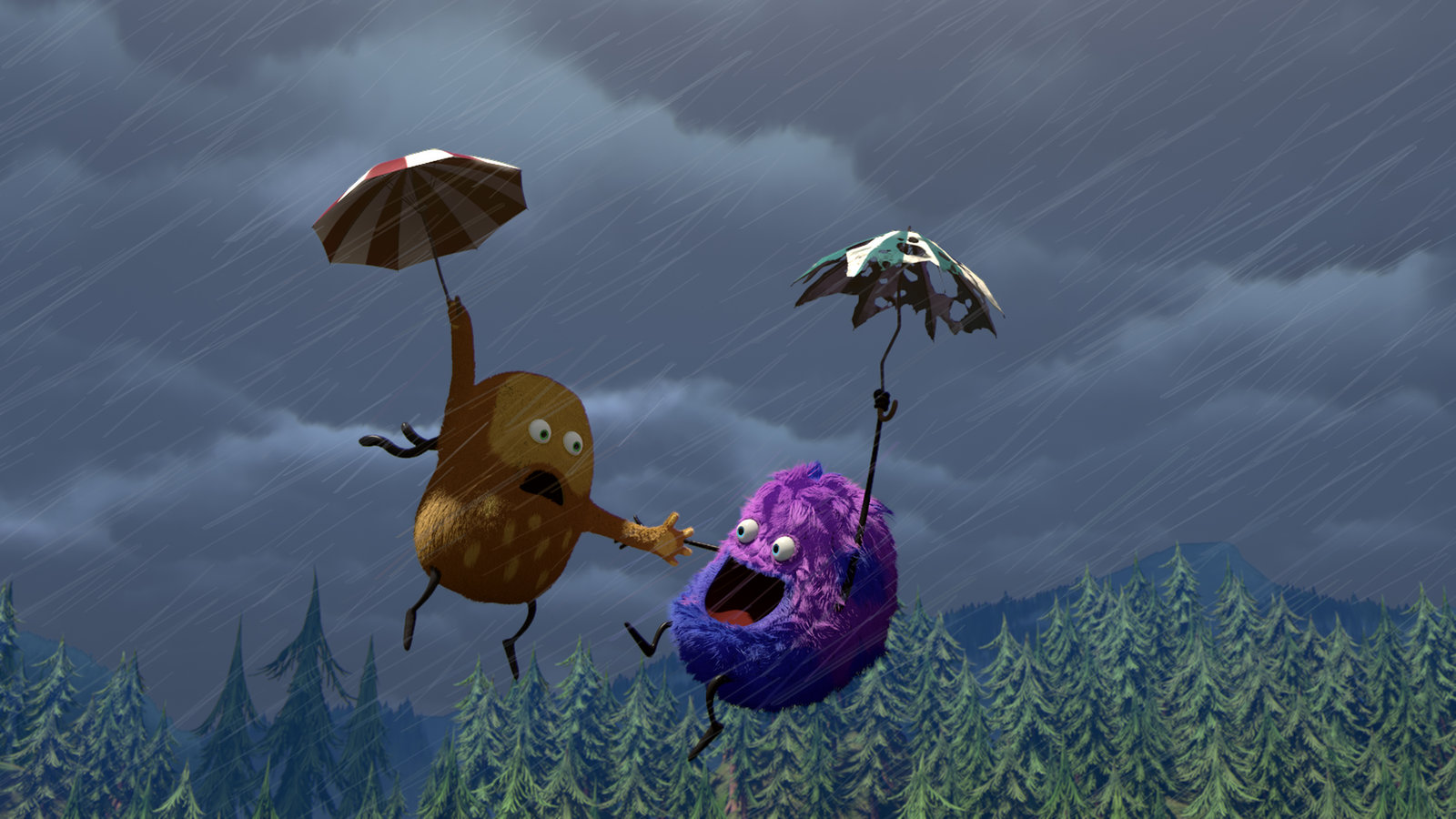 Die RegenschirmeAls Kiwi seinen Regenschirm aufspannt, wird er vom Sturm davon geweht.Bild: © NDR/Copenhagen Bombay