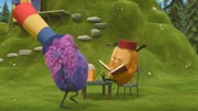 Der Turbo-PinselKiwi findet den Schnurrbart, den ihm Strit ins Gesicht gemalt hat, nicht lustig.Bild: © NDR/Copenhagen Bombay Rights