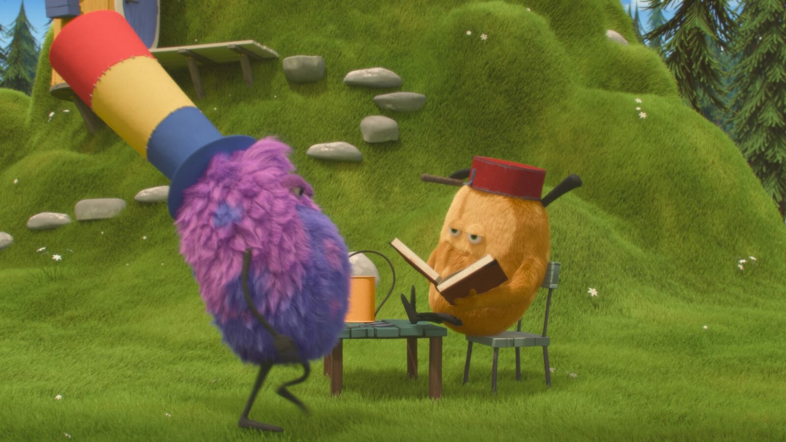 Das Geburtstags-GeschenkKiwi und Strit beraten, wie man das kaputte Geschenk repariert.Bild: © NDR/Copenhagen Bombay Rights