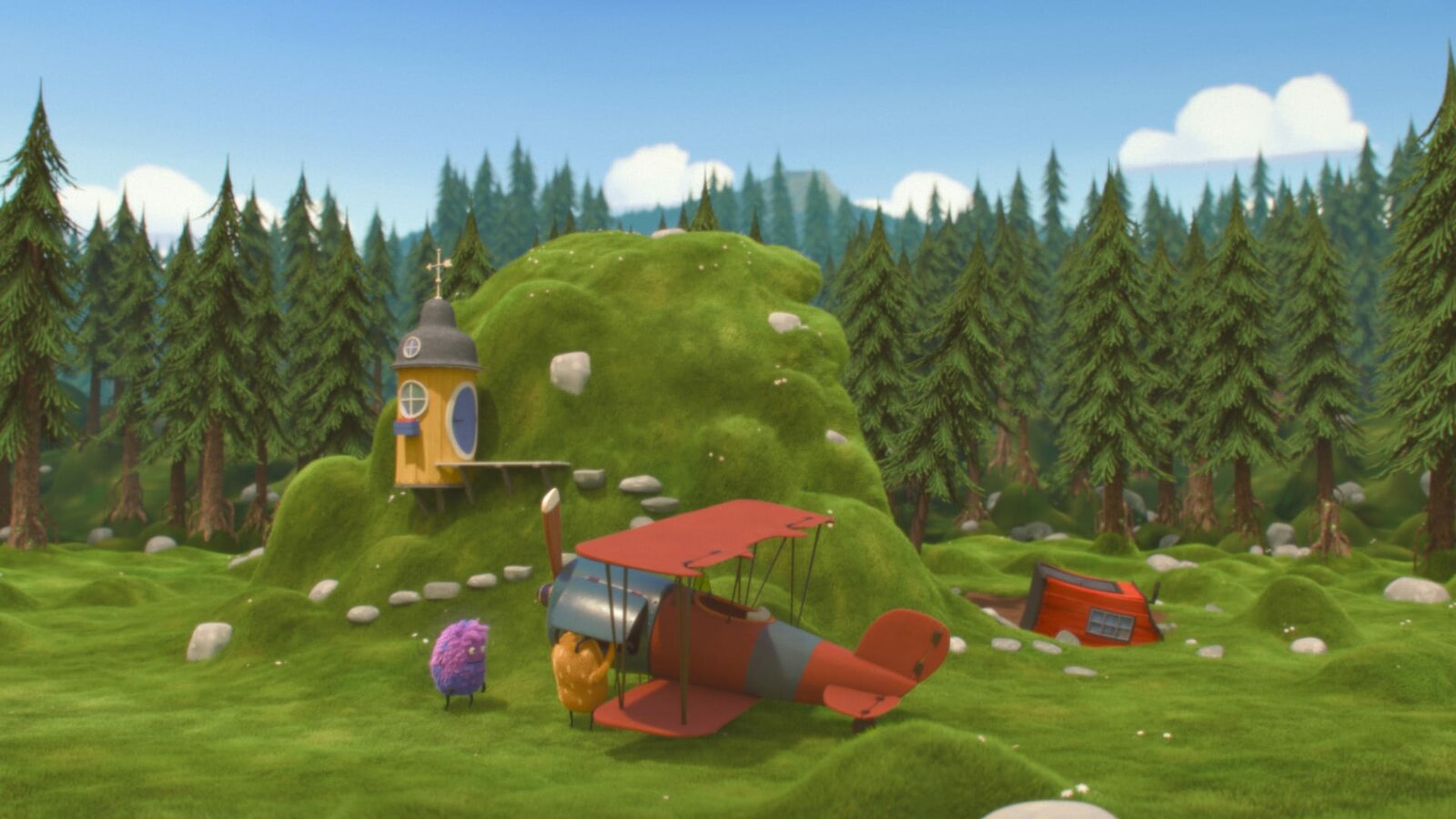 Das neue VogelnestKiwi bastelt an seinem Flugzeug. Strit schaut aufmerksam zu.Bild: © NDR/Copenhagen Bombay Rights