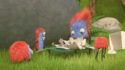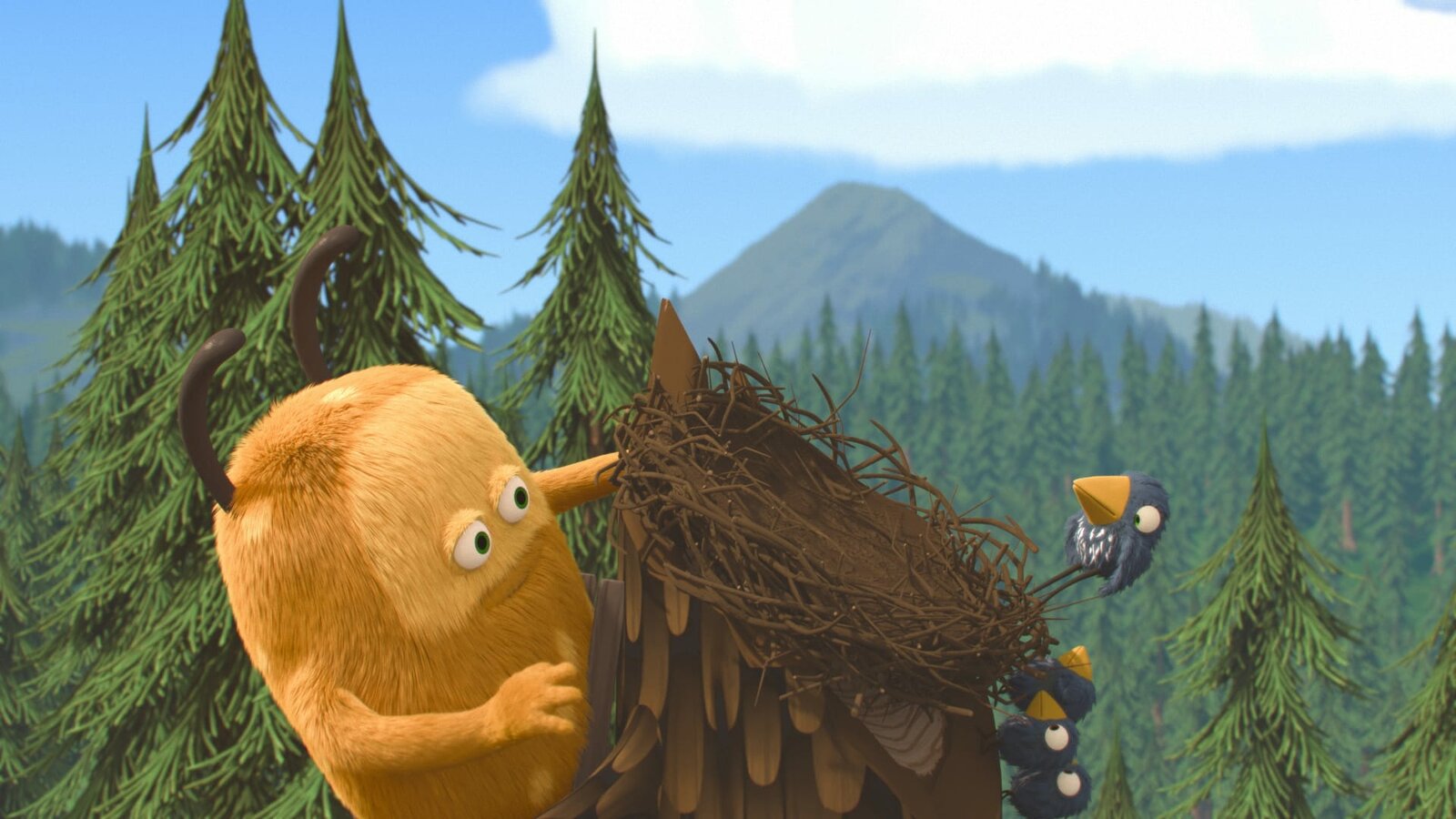 Das Geburtstags-GeschenkKiwi verhindert, dass die Wald-Kreatur davonfliegt.Bild: © NDR/Copenhagen Bombay Rights