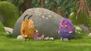Das verlorene EiStrit hat das Ei vor der wilden Wald-Kreatur gerettet.Bild: © NDR/Copenhagen Bombay Rights
