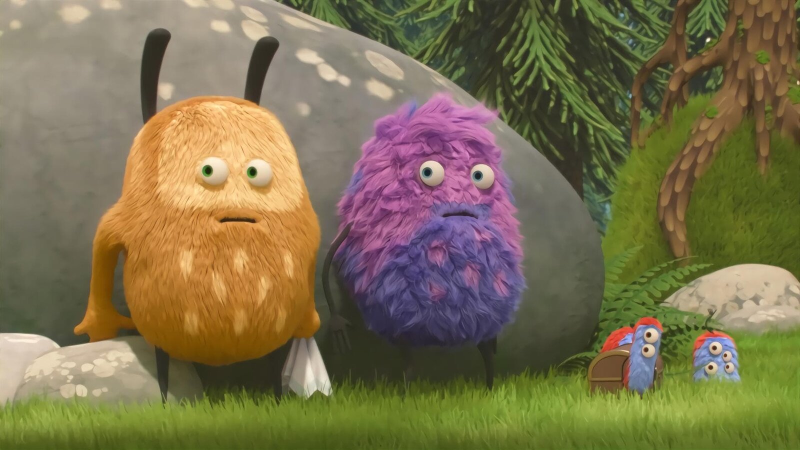 Das Geburtstags-GeschenkVier Wald-Kreaturen sehen sich das kaputte Geschenk an.Bild: © NDR/Copenhagen Bombay Rights