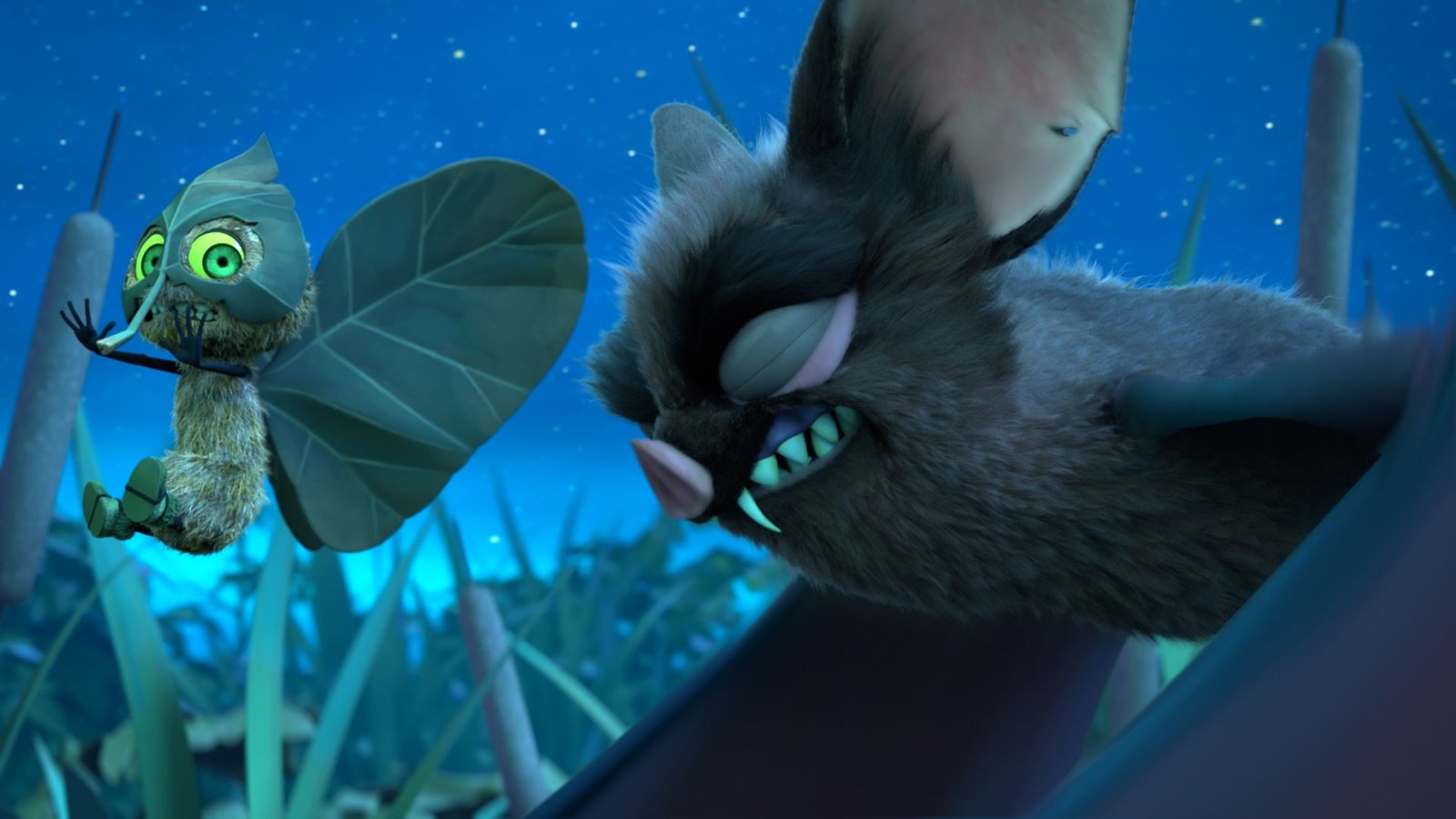 Urlaub für AnnaIncognito will seinen Mut beweisen, ist aber wohl etwas zu übermütig geworden. Er hat der Fledermaus ein Haar ausgerissen und wird nun von dem gefährlichen Blutsauger verfolgt.Bild: © ZDF/2019 - METHOD ANIMATION - BIDIBUL PRODUCTIONS - ZDF ENTERPRISES.