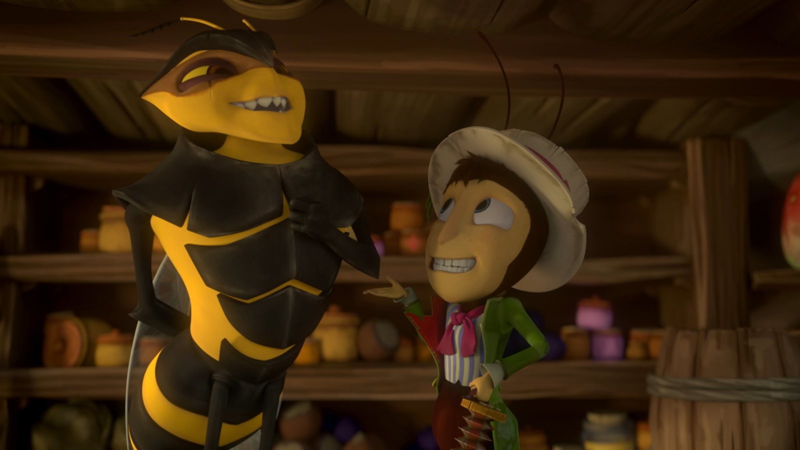 Ameise auf AbwegenDie Plagegeister Senior Silbermotte und Micki Mücke können es nicht fassen: Der Marmeladentopf schwebt! Sie ahnen nicht, dass ihr Kumpel Incognito da steht und den Topf festhält - denn der ist unsichtbar!Bild: © ZDF/2019 - METHOD ANIMATION - BIDIBUL PRODUCTIONS - ZDF ENTERPRISES.