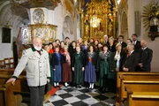Silber und Salz - Die Städte Schwaz und Hall in Tirol"Klingendes Österreich", "Silber und Salz - Die Städte Schwaz und Hall in Tirol." Die Zeit ihrer Hochblüte ist bei den Tiroler Städten Schwaz und Hall schon vor Jahrhunderten zu Ende gegangen. Die Spuren jedoch, die der Silberreichtum und der Salz-Segen hinterließen, haben in ihren Bauwerken als steinerne Zeugen die Zeiten überdauert und erfreuen in unseren Tagen Augen und Gemüter der Menschen. Das Zusammenspiel von historischer und landschaftlicher Schönheit, überragt von den Karwendelbergen mit dem markanten Bettelwurf, lässt eine gute klingende Stunde erwarten. Verfeinert mit Gesang und Musik von Knappenmusik Schwaz, Unterinntaler Volksmusikanten, Geschwister Huetz, Stimmpfeffer, Franz Posch & seine Innbrüggler, Harfenduo Saringer - Seiwald, Vokalensemble Cantilena Tyrolensia und Speckbacher Stadtmusik Hall in Tirol.Im Bild: Helli und Sepp Forcher mit dem Vokalensemble Cantilena Tyrolensia.Bild: © ORF