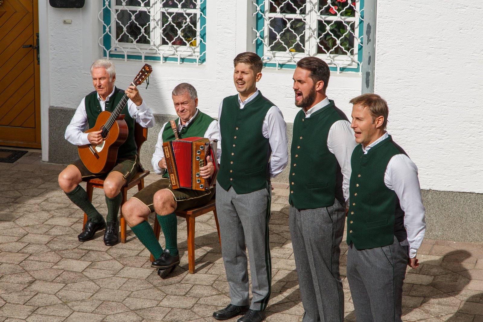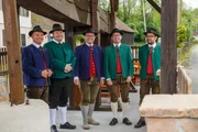 Von der Burg Finstergrün über die Turrach nach MillstattVor dem Türkhaus in Radenthein, in dem ein Bergbaumuseum untergebracht ist, singt das Quartett B.A.S.T. (Bass, Alt, Sopran, Tenor) "Auf'm Barbaratag", re.: Sepp Forcher.Bild: © ORF III