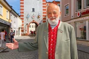 "Viertel und Winkel in Oberösterreich und Bayern": Alte, neue und verkehrte Welt an Salzach und InnSepp Forcher vor den Wappen von Mühldorf am Inn.Bild: © ORF2