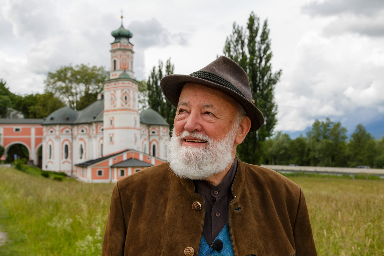Silber und Salz - Die Städte Schwaz und Hall in Tirol"Klingendes Österreich", "Silber und Salz - Die Städte Schwaz und Hall in Tirol." Die Zeit ihrer Hochblüte ist bei den Tiroler Städten Schwaz und Hall schon vor Jahrhunderten zu Ende gegangen. Die Spuren jedoch, die der Silberreichtum und der Salz-Segen hinterließen, haben in ihren Bauwerken als steinerne Zeugen die Zeiten überdauert und erfreuen in unseren Tagen Augen und Gemüter der Menschen. Das Zusammenspiel von historischer und landschaftlicher Schönheit, überragt von den Karwendelbergen mit dem markanten Bettelwurf, lässt eine gute klingende Stunde erwarten. Verfeinert mit Gesang und Musik von Knappenmusik Schwaz, Unterinntaler Volksmusikanten, Geschwister Huetz, Stimmpfeffer, Franz Posch & seine Innbrüggler, Harfenduo Saringer - Seiwald, Vokalensemble Cantilena Tyrolensia und Speckbacher Stadtmusik Hall in Tirol.Im Bild: Sepp Forcher vor der Karlskirche Volders.Bild: © ORF