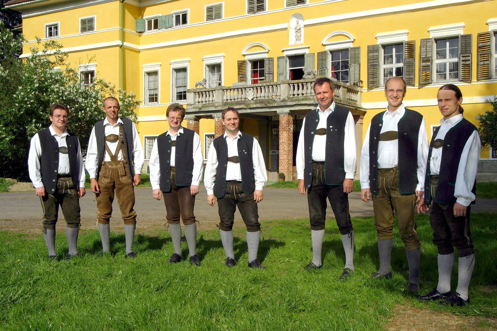 Von den Kletterfelsen zu den Weinbergen - Von der Hohen Wand zu den DreiländereckenJungpartie des Steirischen Jägerchores vor dem Schloss Poppendorf.Bild: © ORF III