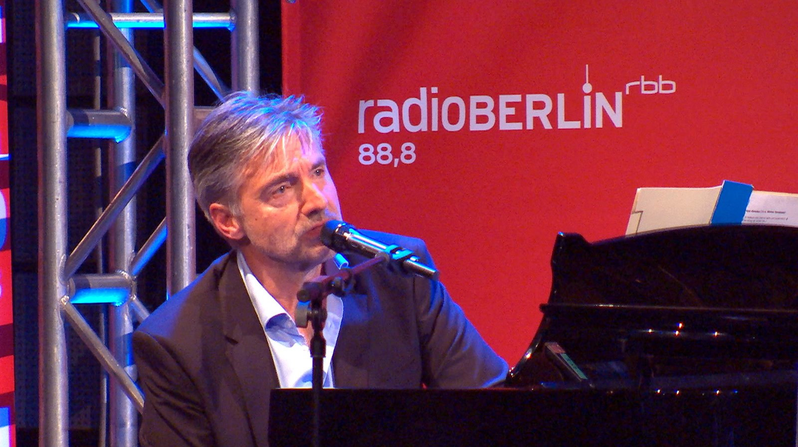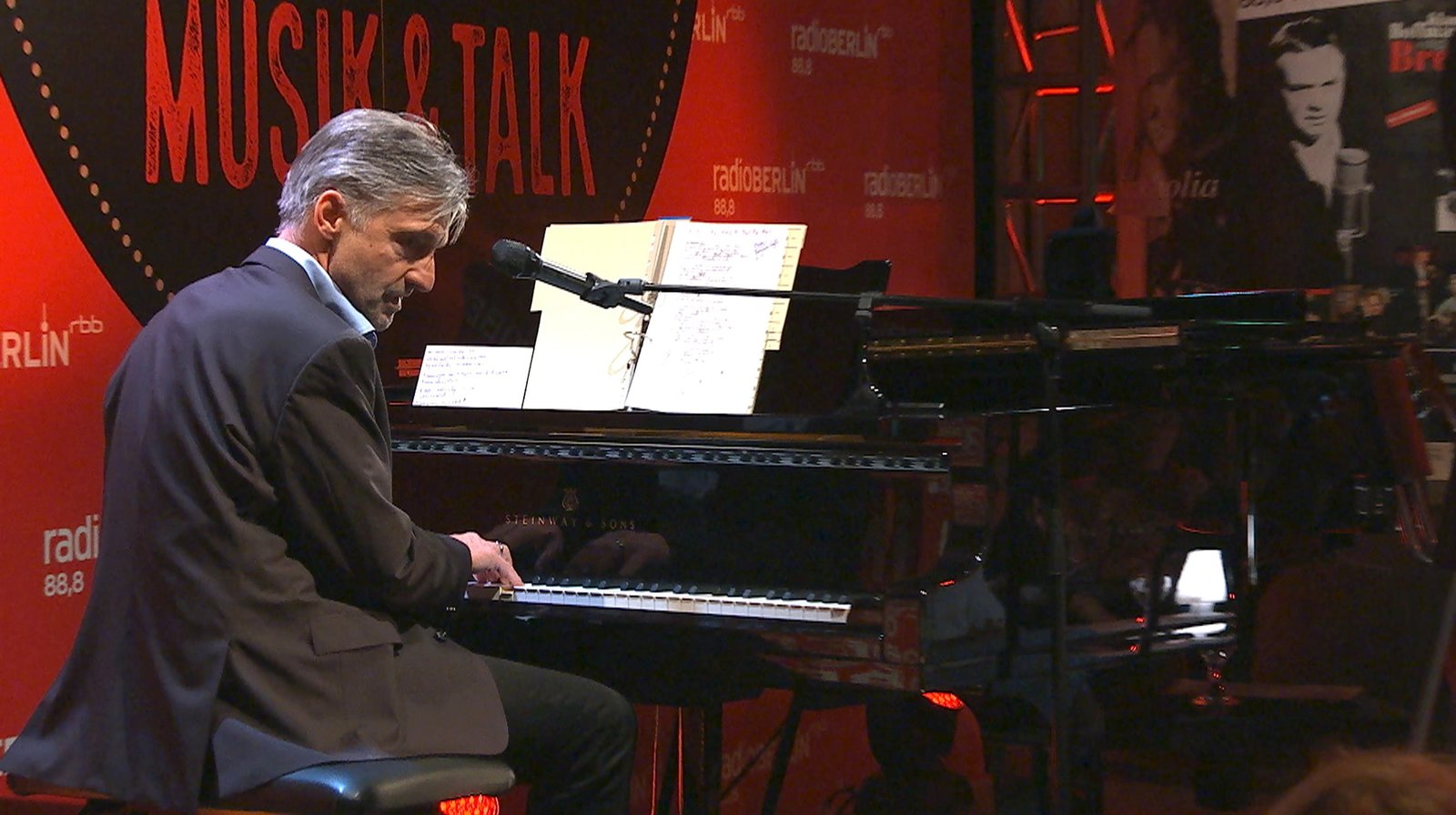 Max MutzkeDas Format „Knapp daneben“, eine Mischung aus Musik und Talk, stellt in unregelmäßigen Abständen Berliner Künstler vor und zeigt sie von ihrer ganz persönlichen Seite. Dabei geht es nicht allein um deren Musik, sondern auch um Songs und Geschichten, die ihr Leben geprägt haben. Gast der heutigen Sendung ist Dirk Michaelis. - begleitet den jeweiligen Gast dabei immer mal wieder am Flügel und schlägt einen musikalischen Bogen zwischen Publikum und Künstler. - radioBERLIN-Moderator Heiner KnappBild: © rbb