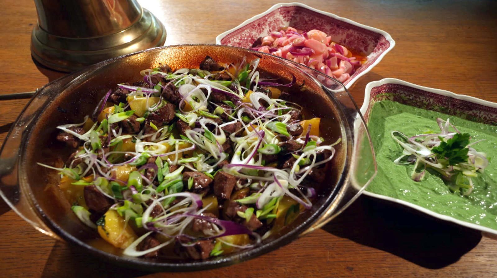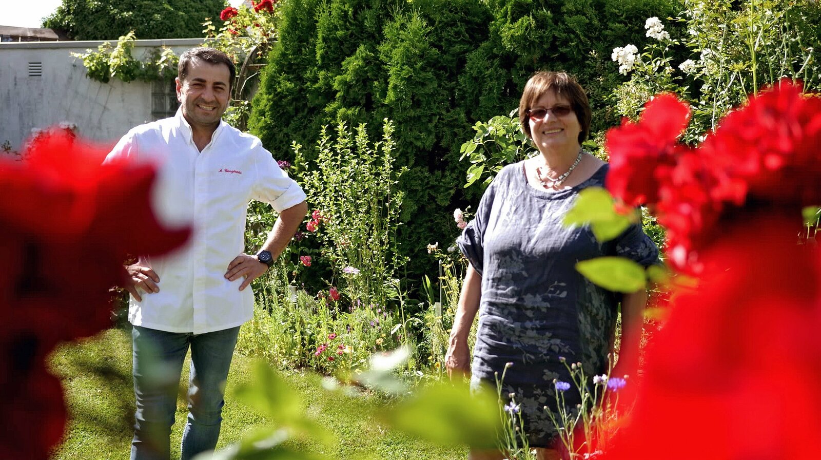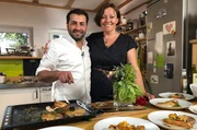 Kurzgebratenes Reh mit Kürbis-Apfel-Stampf von Ali GüngörmüsDie leidenschaftliche Hobbyköchin Gitta Wittmer-Eigenbrodt aus Vöhl am Edersee und Profikoch Ali Güngörmüs, Münchner mit türkischen Wurzeln.Bild: © HR/Bettina Schrauf