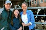 Beinscheiben mit Rote Bete-Graupenragout von Ali GüngörmüsSybille Krick (rechts) mit ihrem Mann Horst und ihrer Tochter Johanna.Bild: © HR/Bettina Schrauf